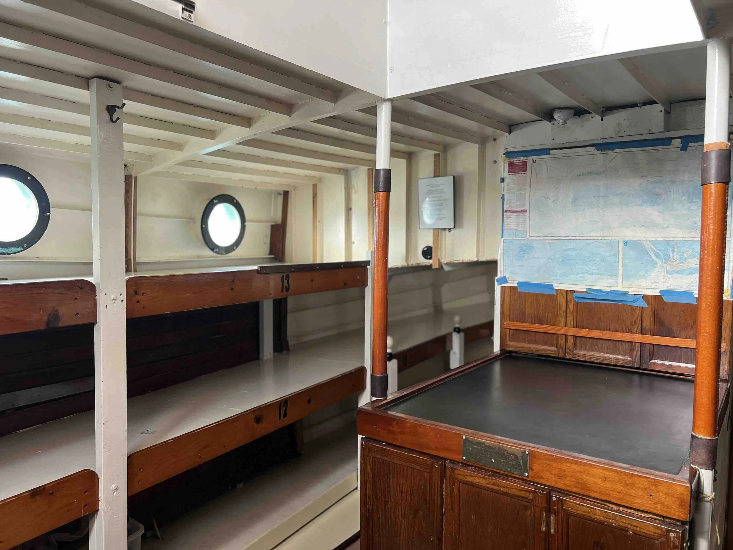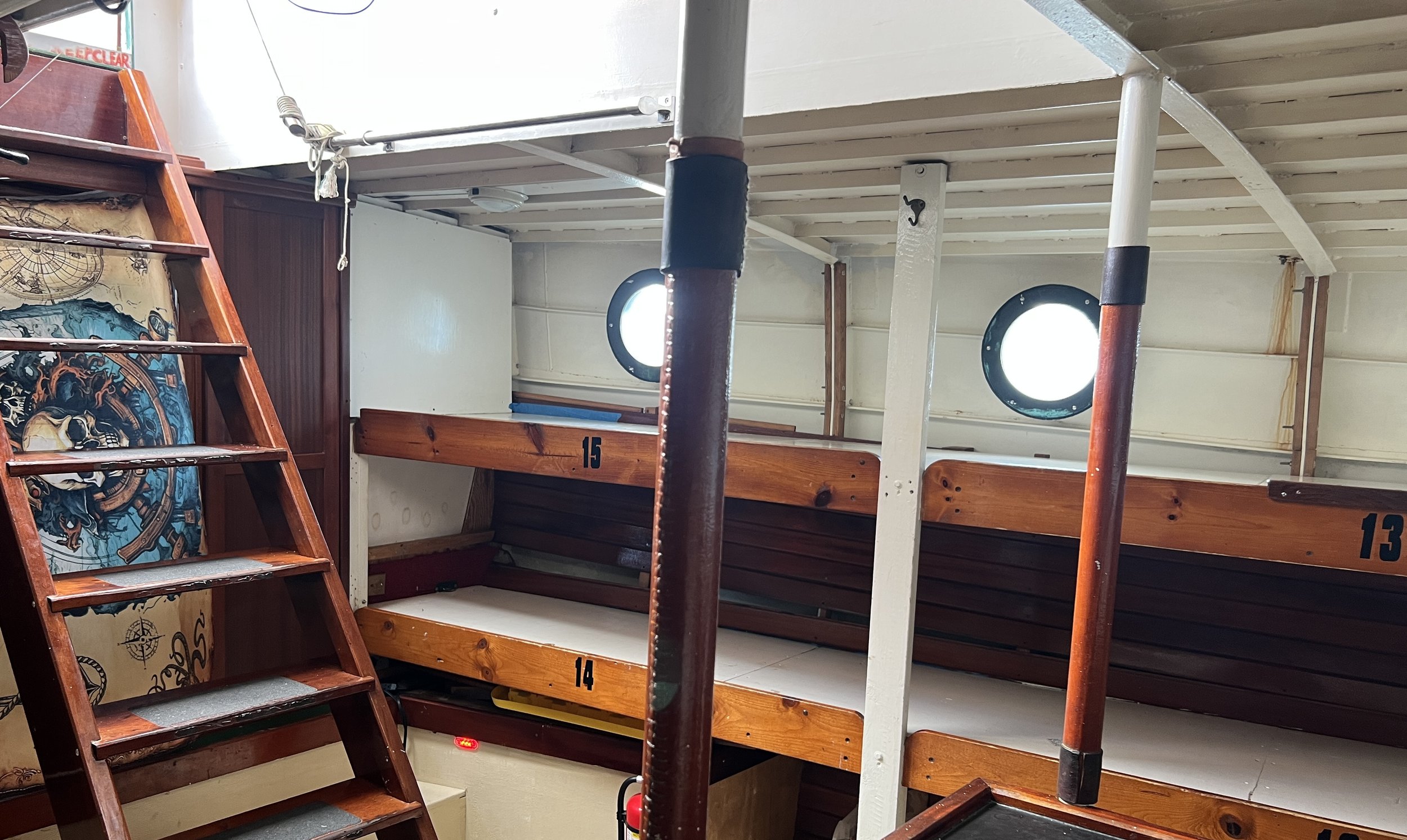 As of January 2026, Wonder is in the ship yard getting an upgrade to her bunks to make them more comfortable and private. Looking at the pictures on this page, you can see that these bunks are wide open with no curtain or division between them. When we are finished in time for summer 2026, our bunks will have a cozier feel.